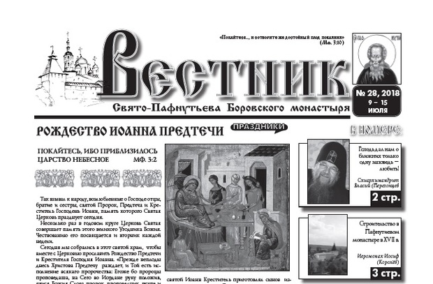 Свежий 28-й выпуск еженедельника "Вестник" с материалом о Пафнутьевом монастыре