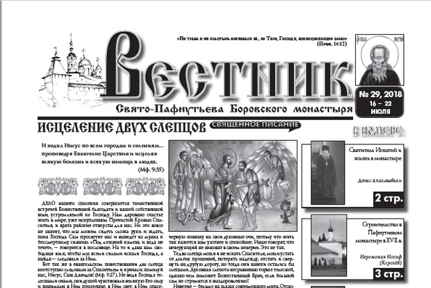 Издательством Пафнутьева монастыря опубликован свежий 29-й номер еженедельника "Вестник", в котором рассказывается строительстве в Пафнутьевом монастыре в XVII в.