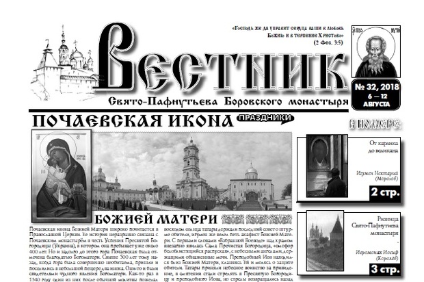 Свежий 32-й выпуск еженедельника "Вестник" с материалом о Пафнутьевом монастыре