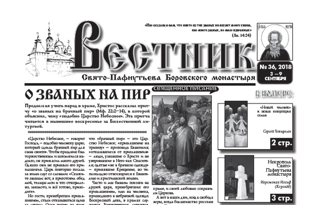 Свежий 36-й выпуск еженедельника "Вестник" с материалом о Пафнутьевом монастыре