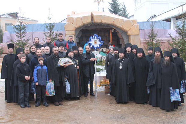 Поздравление наместника братией и Воскресной школой с Рождеством Христовым |