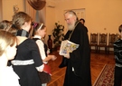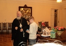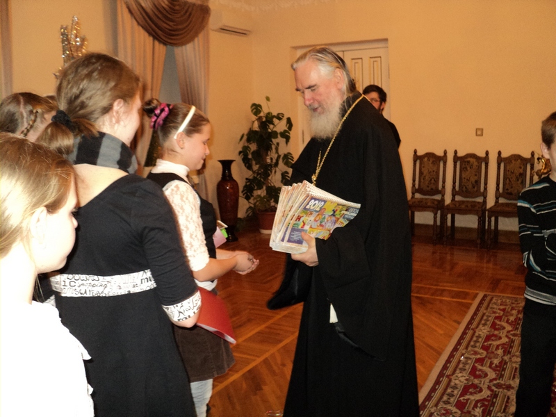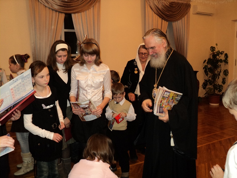 В этот же день воскресная школа при Пафнутьевом монастыре побывала в Калуге на поздравлении митрополита Калужского и Боровского Климента. Дети исполнили рождественские колядки, читали стихи. Самым радостным было, конечно же, получить подарки из рук самого владыки.