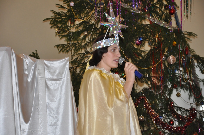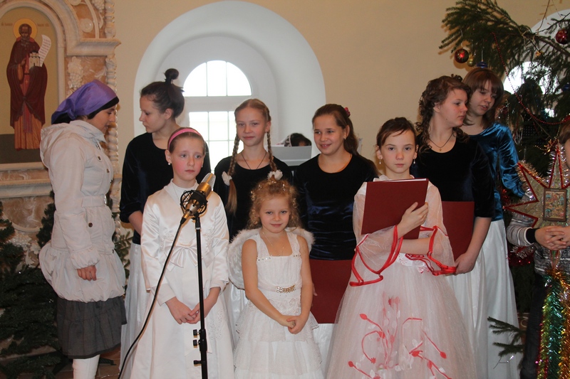 Затем молодые ребята под руководством своих руководителей один за другим исполняли постановочные номера. Своими выступлениями ребята сумели создать Рождественское настроение и заинтересовать юных зрителей. Со стороны было очень интересно наблюдать за каждым, происходящим на сцене, действием. Девочки из воскресной школы проникновенно исполнили ряд песен на Рождественский мотив. А юные актеры богодухновенно и мастерски исполнили притчу "Зриши свои прегрешения".