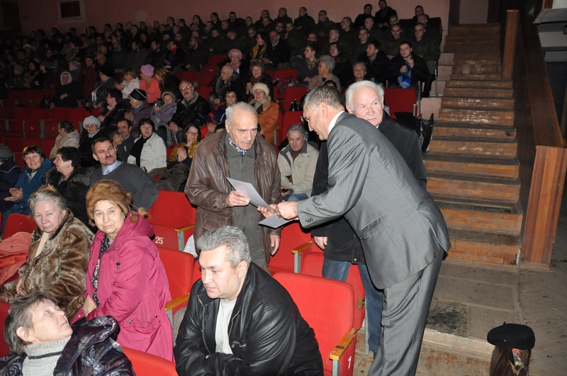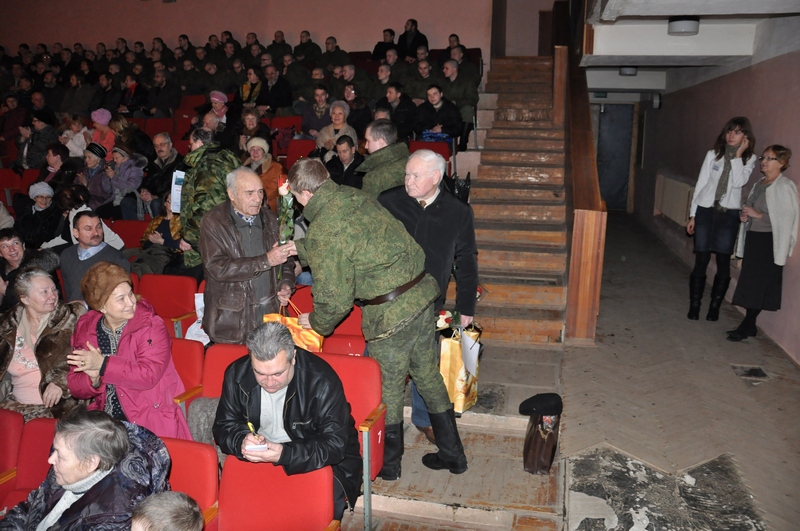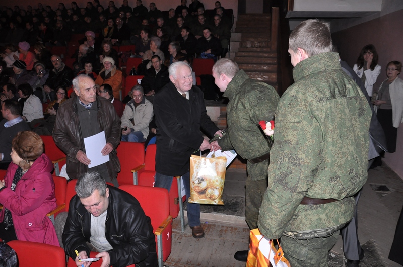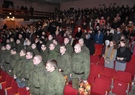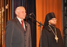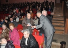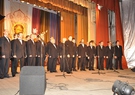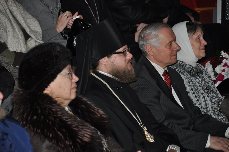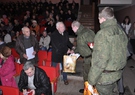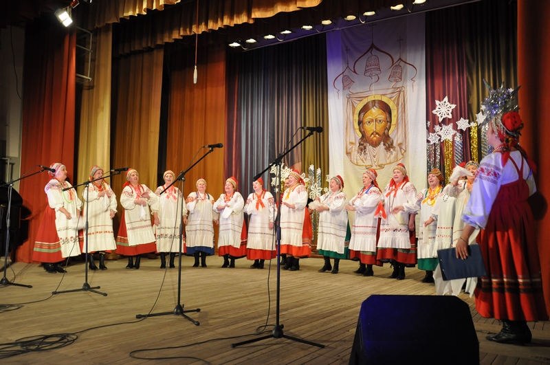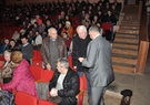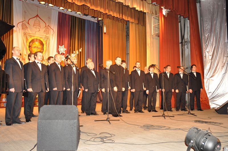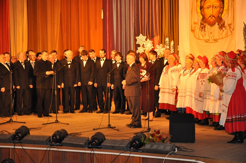 И наконец завершилась праздничная рождественская неделя замечательным концертом, который прошел вечером 9 января в Боровском районном доме культуры. Он был посвящен Рождеству Христову и 70-летию освобождения Боровской земли от немецко-фашистских захватчиков. В концерте приняли участие мужской хор Калужской филармонии и народный хор села Дешовки Козельского района. Зрелище оказалось незабываемым! Зал был полон народа и стал свидетелем прекрасного пения, стал очевидцем участия в жизни народа двух певческих традиций - профессиональной академической и русской-народной. Приветственные и поздравительные слова произносили наместник Боровского монастыря архимандрит Серафим и Кузнецов Николай Васильевич Председатель Городской Думы, Глава муниципального образования городское поселение город Боровск. Отец наместник напомнил присутствующим о величине праздника и беспрецедентном смирении Спасителя, которому и мы должны постоянно подражать и к которому должны стремиться. Николай Васильевич рассказал некоторые малоизвестные страницы Великой Отечественной войны связанные с Боровской землей. Именно бои под Боровском положили начало победы русского народа и в первый раз остановили продвижение немецкой армии. По просьбе Николая Васильевича все присутствующие почтили память почивших в войне солдат минутой молчания, после чего Александр Николаевич Ракитин вручил памятные грамоты и подарки присутствовавшим здесь ветеранам.