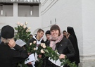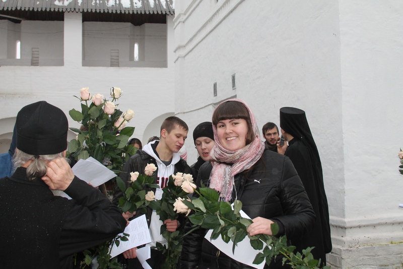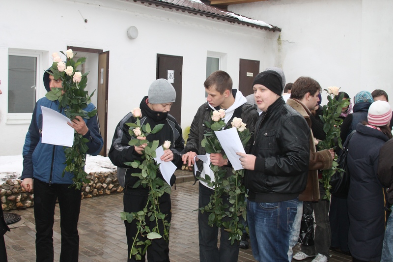 Такая теплая встреча всех очень обрадовала. После вступительных слов, дружинники спели песни и в конце каждый из них подарил по 3 красивые белые розы, из которых получился огромный красивый букет. Затем отец Серафим рассказывал много интересных рассказов, во многом открывая для слушателей что-то новое.