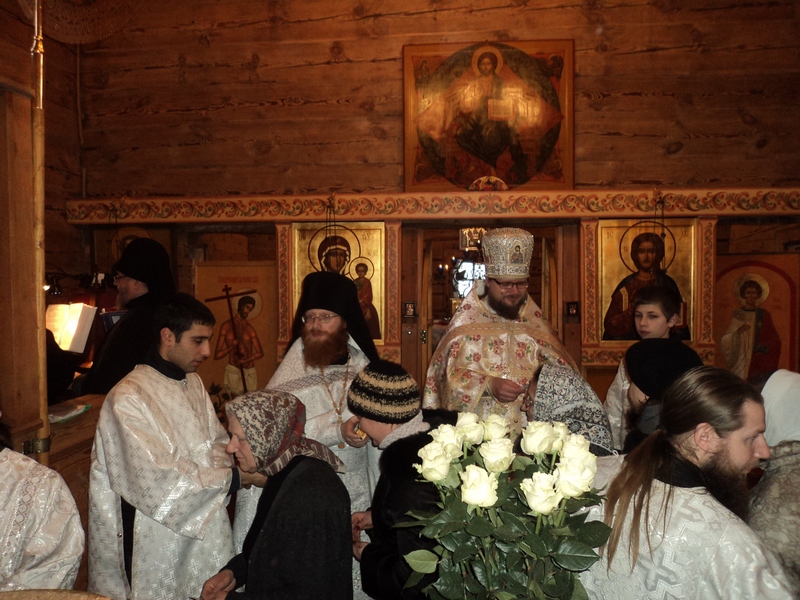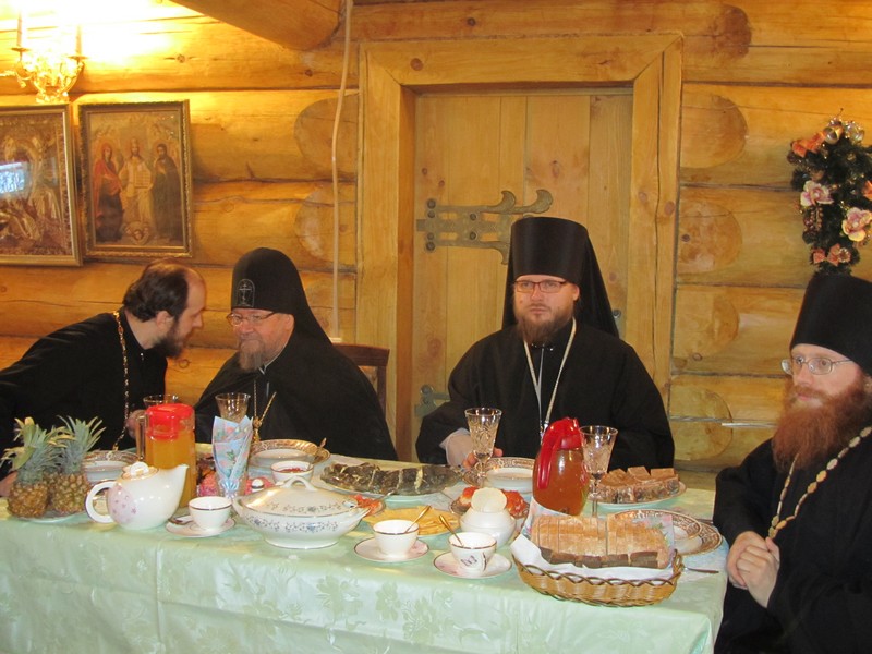 После богослужения все отправились к часовне родителей преподобного Пафнутия, где спели величания празднику. Затем отец Иосиф пригласил всех на трапезу. Во время трапезы также было пение рождественских колядок, в чем прихожанам помогал отец Серафим.
