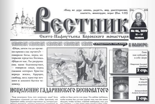 Издательством Пафнутьева монастыря опубликован свежий 46-й номер в 2019 году еженедельника "Вестник", в котором опубликована подборка материалов по вопросам, касающимся жизни Церкви в современном мире.