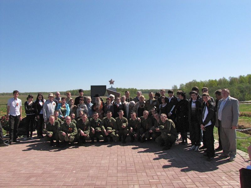 И вдруг, после узкой просечной дороги, открылась залитая солнцем поляна. На ней - величественный памятник павшим воинам на высоком постаменте. Мемориальный комплекс обнесен оградой и устлан плиткой. Все ухожено и чисто. По периметру установлены мраморные доски с многочисленными именами воинов. Их захоронено в этой могиле около двух тысяч. Последнее перезахоронение 947 воинов в этот комплекс произошло в 2008 году.