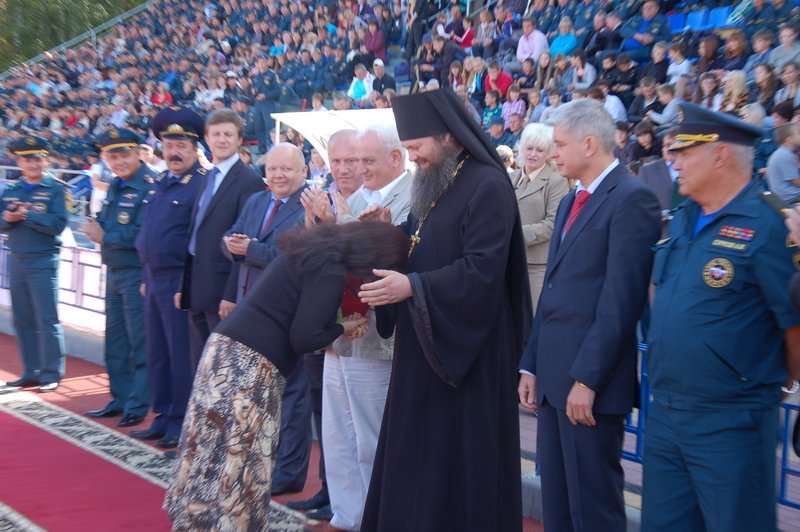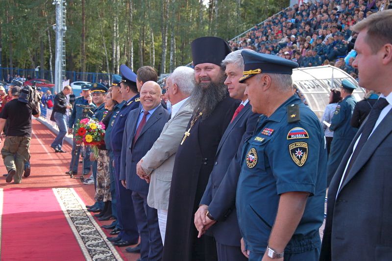 05 сентября руководитель епархиального отдела по взаимодействию с силовыми структурами иеромонах Дорофей (Соколов) принял участие в церемонии открытия Всероссийских открытых соревнований на Кубок МЧС России по пожарно-прикладному спорту, посвященных памяти Героя России В.М. Максимчука.