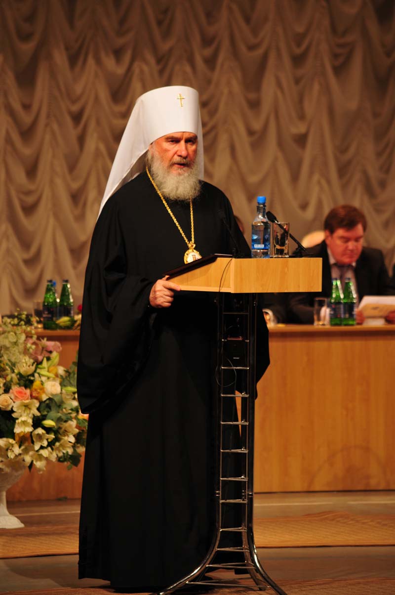 В докладе «Духовная основа жизни общества» митрополит Климент уделил внимание современной жизни общества и напомнил о нескольких юбилейных датах, которые наша страна отмечала в этом году. Способны ли мы ныне сохранить духовную преемственность с ополченцами 1612 года, защитившими Россию от интервентов, с героями 1-ой Отечественной войны, в 1812 году давших отпор под деревенькой Бородино «непобедимой» армии «двунадесяти языков», вторгшейся в Россию? Владыка напомнил, что 23 сентября в память русских воинов, защитивших страну в 1480 году (Великое стояние на Угре), в Калужской епархии молились об упокоении их душ.