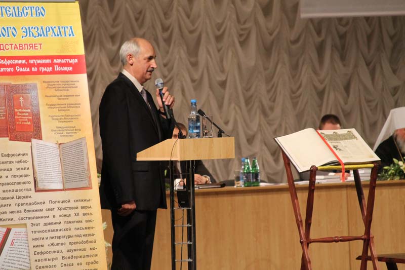 Бурными аплодисментами сопровождалось выступление Владимира Всеволодовича Грозова, заместителя председателя Общественного Совета по нравственности Республики Беларусь, лауреата премии Главы государства Республики Беларусь «За духовное возрождение». Он является исполнительным директором Издательства Белорусского Экзархата и в ходе своего выступления представил ряд прекрасных изданий: Слуцкое Евангелие - святыню Белорусской земли, фундаментальное исследование о жизни святой Евфросинии Полоцкой, три тома исторических исследований, проводившихся в течение двадцати лет и посвященных истории дворянских родов Белорусии, оставшихся верными Православию. Владимир Грозов рассказал о шести братьях Казановичах, сражавшихся на Бородинском поле в русских войсках.