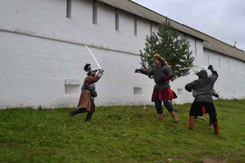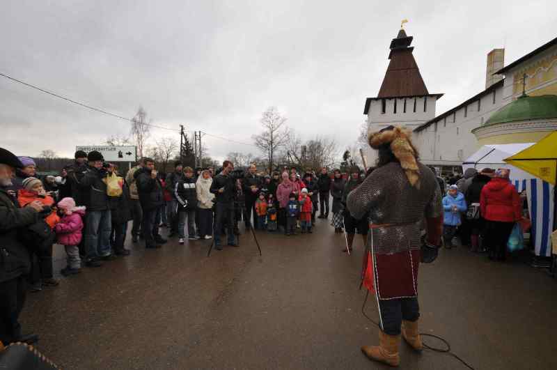 Специально приглашенные артисты из московского военно-исторического клуба «Марка Белфри» развлекали посетителей ярмарки не только рассказами об исторических подробностях периода Смутного времени. Перед монастырскими вратами были воспроизведены сцены с участием воинов в костюмах эпохи, а также разыграна битва «Изгнание лже-царя». После представления всем желающим предлагалось примерить на себя старинные доспехи и сфотографироваться с артистами. Для детей было организовано катание на повозке вдоль стен монастыря.