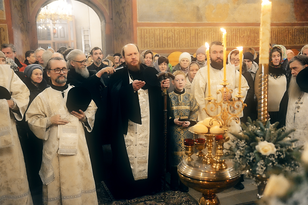 7 января Православная Церковь отмечает праздник Рождества Христова. Накануне праздника 6 января в Пафнутиевом монастыре прошло всенощное бдение, состоящее из великого повечерия с литией, утрени и 1 часа. Богослужение возглавил наместник обители игумен Пафнутий.