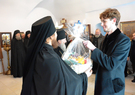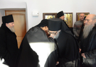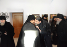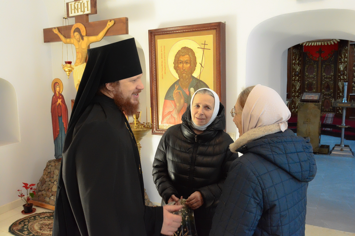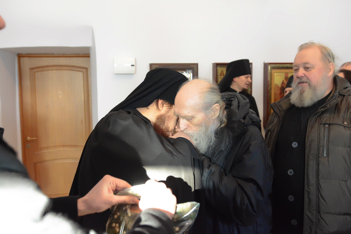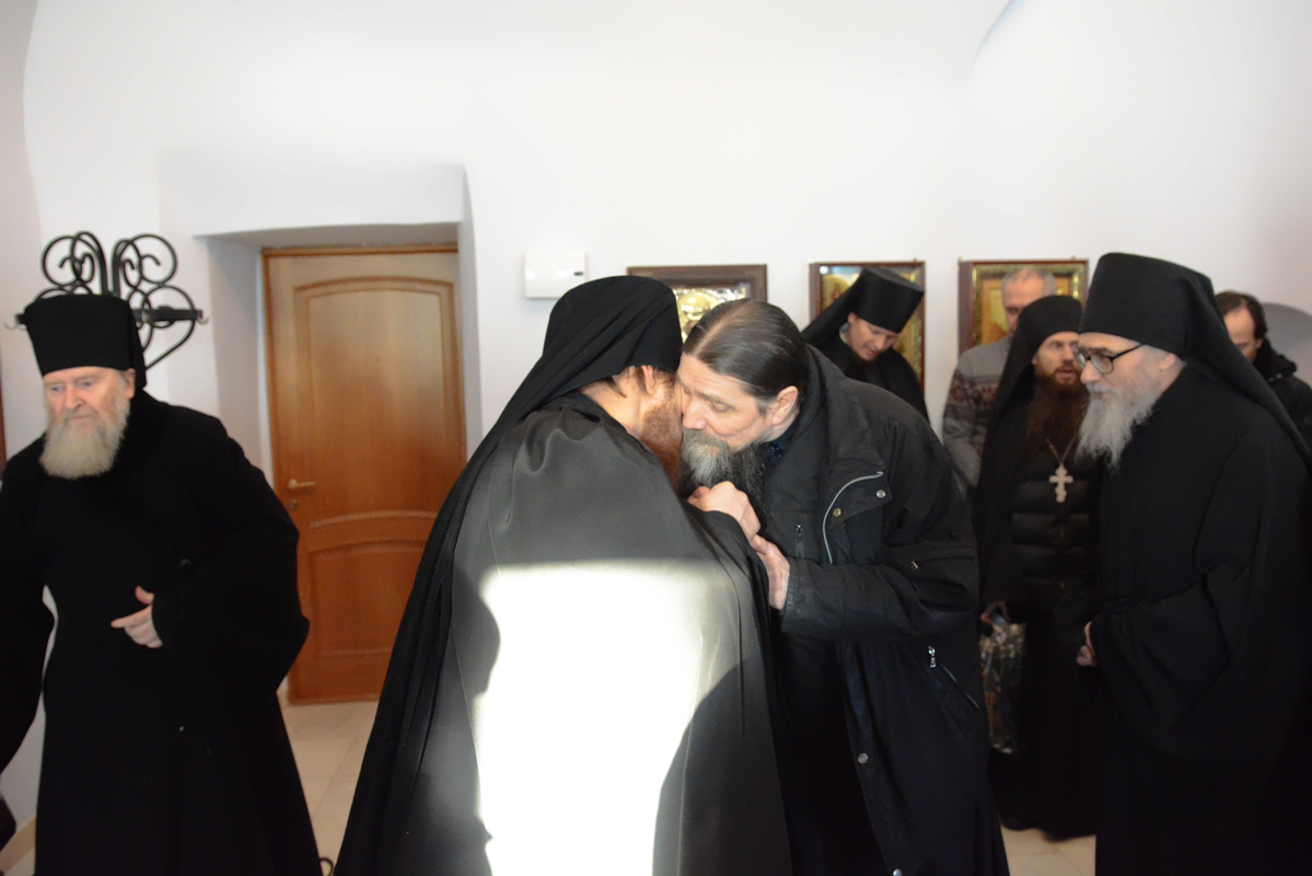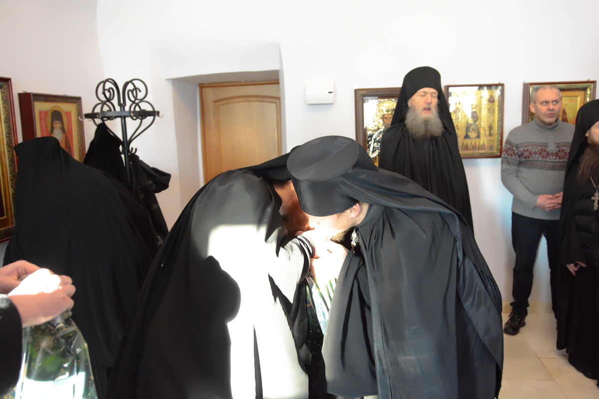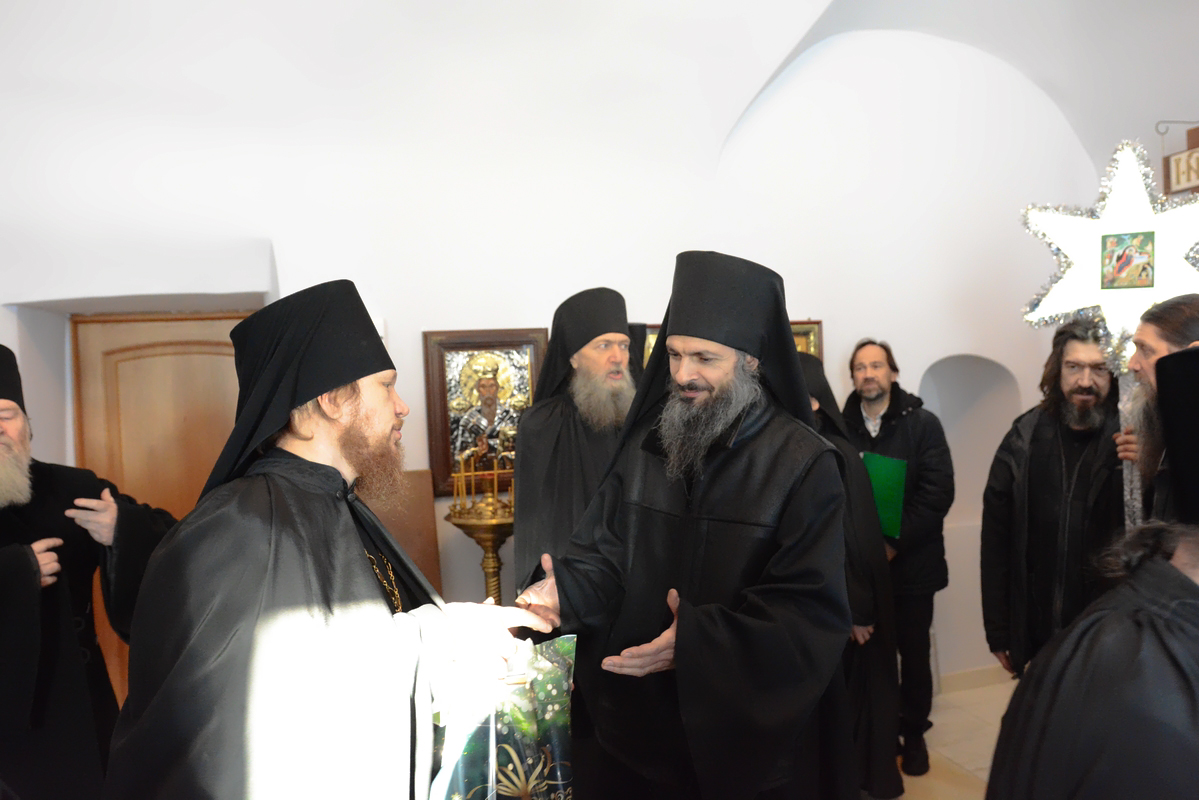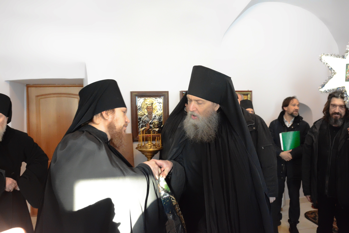 По традиции в первый день Рождества Христова братия поздравили отца наместника с праздником. После пения праздничных песнопений и колядок, благочинный, отец Сергий, поздравил отца Пафнутия с Рождеством Христовым. Он подлагодарил его за пастырскую заботу, пожелал терпения и мудрости в нелегком наместническом служении. В ответ отец Пафнутий поблагодарил за поздравление и от себя поздравил братию с праздником. Он призвал к терпеливому несению монашеского креста и пожелал Божией помощи в несении послушаний. После этого братия получили от отца Пафнутия символические подарки.