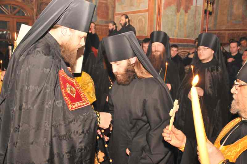 В напутственном слове архимандрит Серафим рассказал о нелегком пути преподобного Нифонта и призвал новопостриженника подражать жизни своего небесного покровителя, строить свою жизнь на исполнении Евангельских заповедей, подвизаться в подвиге благочестия, непрестанно творить молитву Иисусову и не забывать трудов телесных.