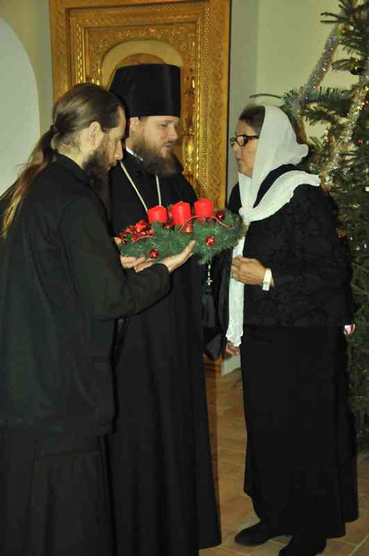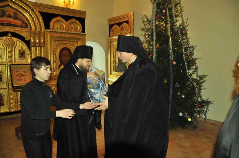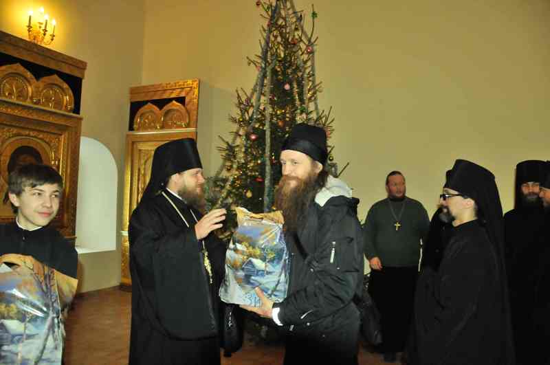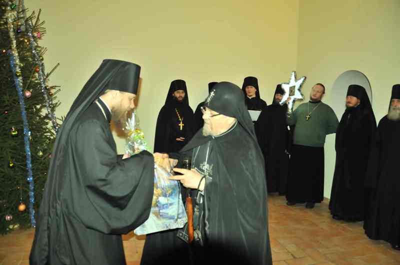 7 января, по окончании поздней Божественной литургии, впервые в храме Рождества Христова, который размещен под куполом монастырской колокольни, наместника монастыря архимандрита Серафима от лица братии поздравил духовник монастыря схиархимандрит Власий. В своем поздравлении он поблагодарил наместника монастыря за его доброе и отзывчивое сердце и пожелал терпеливого несения монашеского креста, твердости духа, любви к Православию и Отечеству, единомыслия, чтобы исполнились слова апостола Павла: «Братия, радуйтесь, усовершенствуйтесь, утешайтесь, будьте единомысленны, мирны, - и Бог любви и мира будет с вами».