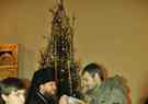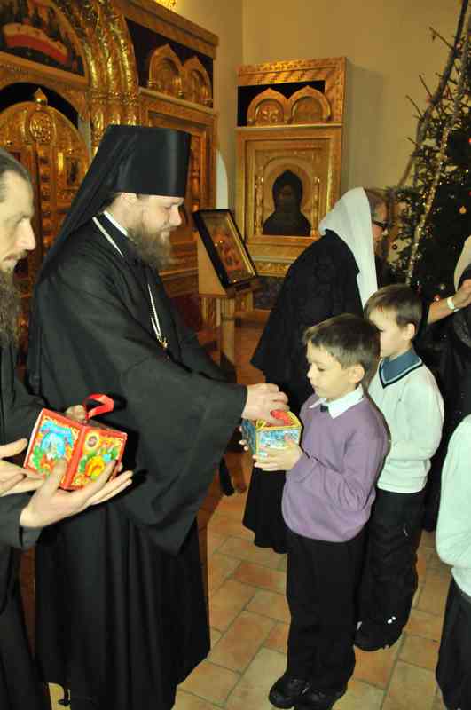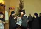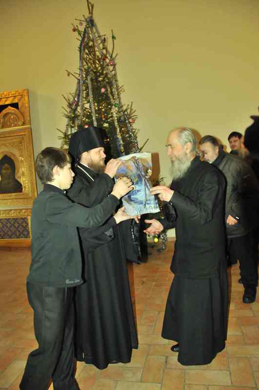 Свои рождественские поздравления архимандриту Серафиму преподнесли воспитанники детской воскресной школы монастыря. Они прославили песнопениями Рождество Христово, а также читали стихи, посвященные рождению Богомладенца, и подарили своему духовному наставнику подарки, сделанные собственными руками.
