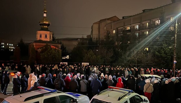 Вечером 15 февраля 2024 года, после того, как сторонники «Православной церкви Украины» спилили замки и закрыли храм в честь иконы Божией Матери «Скоропослушница», сотни верующих собрались на молитву возле церкви.