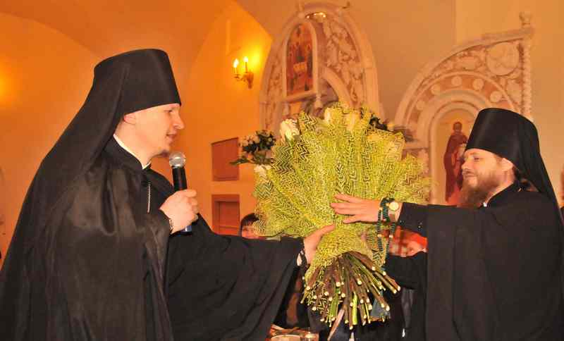 От братии монастыря отца наместника поздравил иеромонах Макарий (Комогоров).