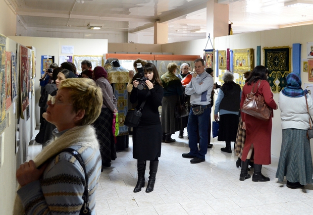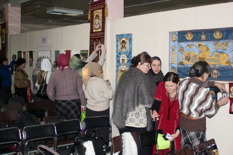 Второй день начался с молебна в Благовещенском кафедральном соборе. Осмотрев храм, гости переместились в музей, где была развернута большая выставка церковного шитья. 100 предметов из ризницы собора, из них 80 -церковный текстиль, и 100 работ, привезённых мастерицами.
