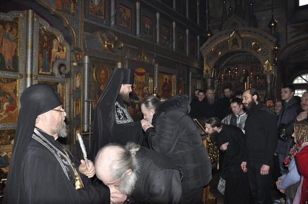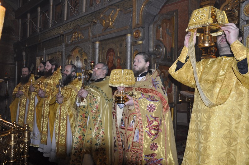 В воскресный день 17 марта Божественную Литургию в соборе Рождества Пресвятой Богородицы совершил архимандрит Серафим в сослужении братии монастыря.