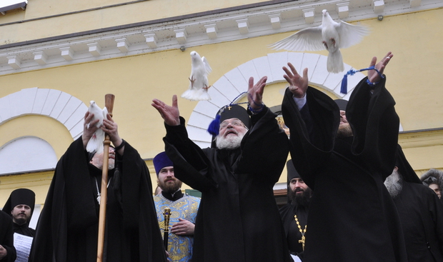 Освящение креста для Георгиевской башни Боровского монастыря |
