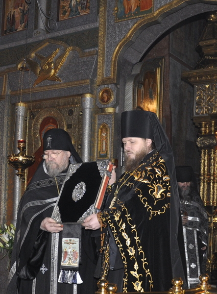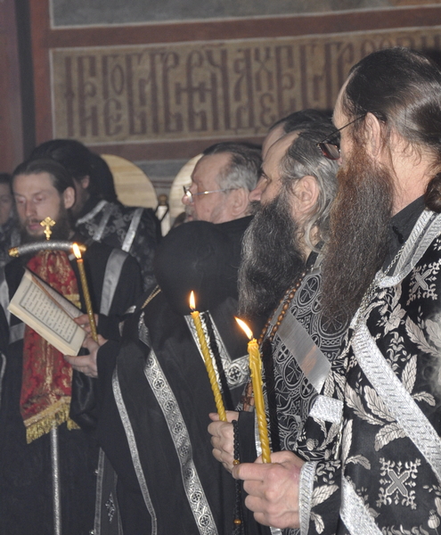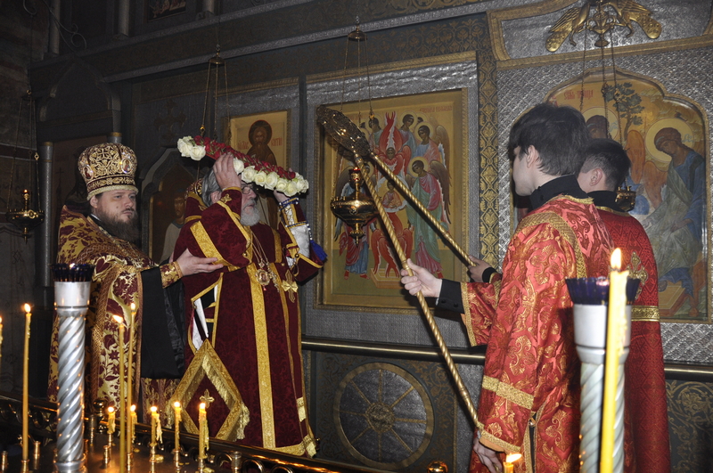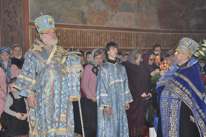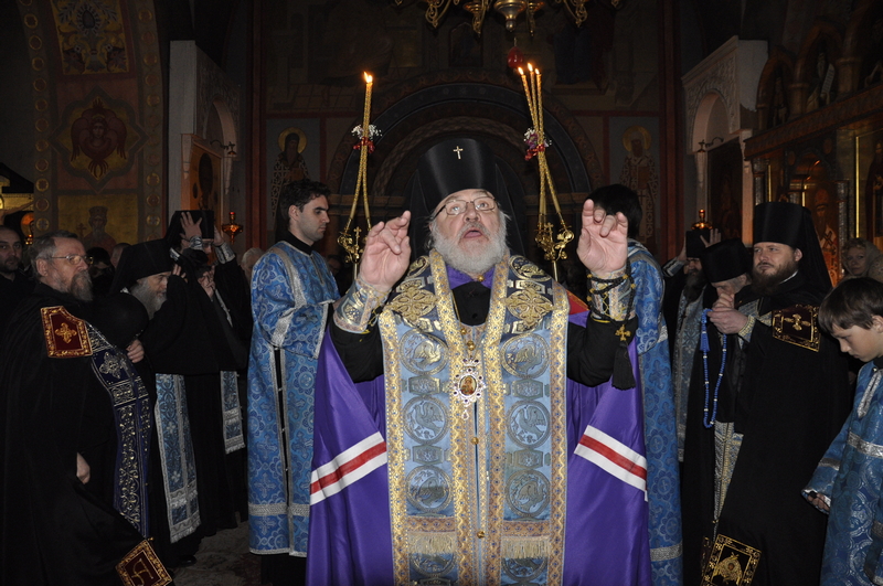6 апреля высокопреосвященнейший владыка совершил всенощное бдение накануне Крестопоклонной недели и праздника Благовещения Пресвятой Богородицы в Свято-Пафнутьев Боровском монастыре.