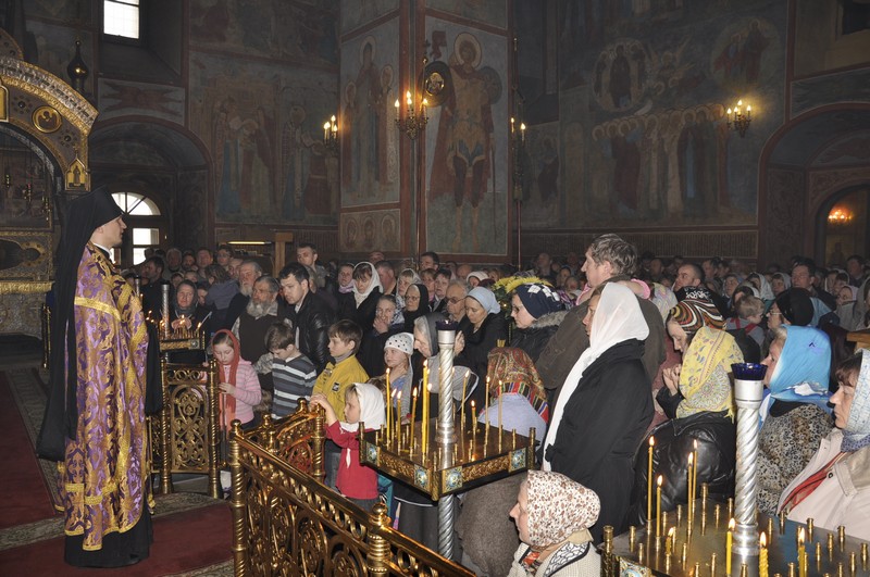 14 апреля в неделю 4-ю Великого поста позднюю Божественную литургию совершили: наместник монастыря архимандрит Серафим (Савостьянов), схиархимандрит Власий (Перегонцев), игумен Силуан (Жучков), иеромонах Савва (Петрушко) в сослужении иеродиаконов Аникиты (Жукова) и Мисаила (Григорьева). Проповедь произнес иеромонах Макарий (Комогоров).