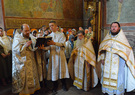 По окончании Литургии духовенство во главе с наместником монастыря игуменом Пафнутием совершило праздничное славление перед иконой Преображения Господня, пропев величание и тропарь празднику.