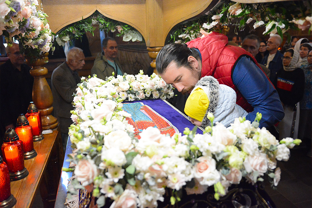 Празднование началось накануне вечером совершением всенощного бдения с литией. Во время полиелея верующие смогли приложиться к чтимой плащанице Божией Матери и помазаться освященным елеем.