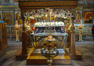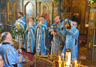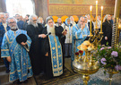 По окончании Литургии духовенство совершило праздничное славление перед плащаницей Пресвятой Богородицы. Затем отец наместник обратился к молящимся с пастырским словом, в котором раскрыл духовное значение праздника.