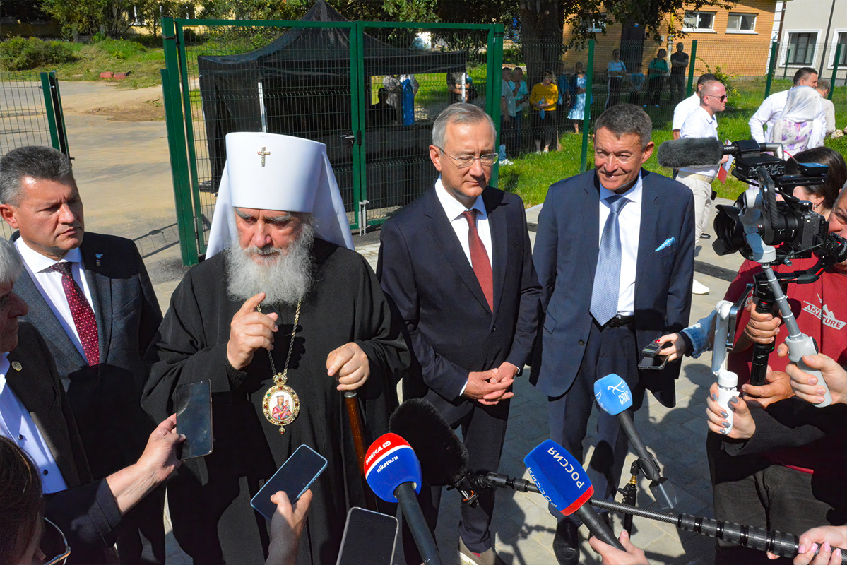 После освящения здания колледжа владыка Климент, губернатор Калужской области Владислав Валерьевич Шапша и Андрей Дмитриевич Каприн провели пресс-конференцию на которой ответили на вопросы журналистов.