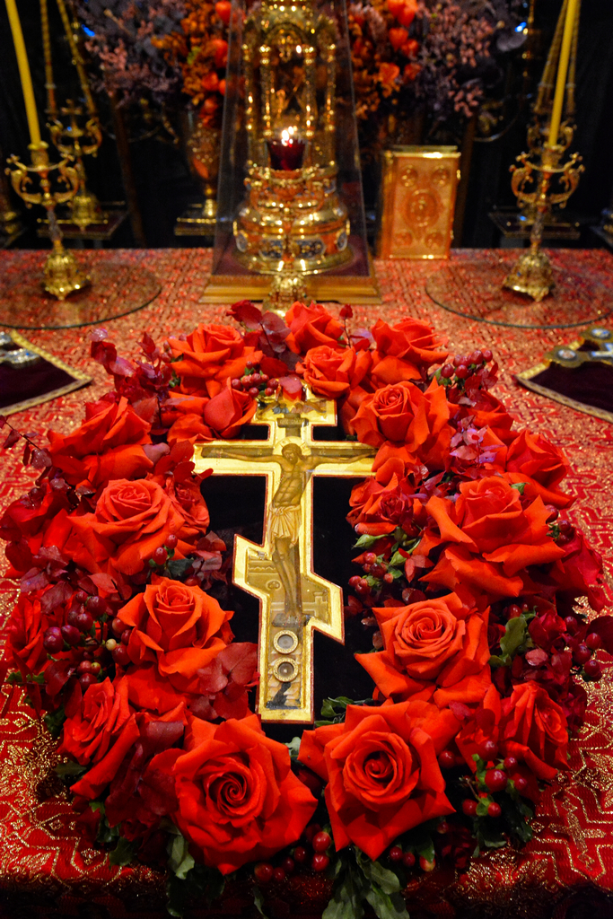В праздник Крестовоздвижения в Пафнутиевом Боровском монастыре прошло праздничное всенощное бдение и две Божественные литургии. На всенощном бдении, при пении великого славословия, Честной Крест был изнесен из алтаря для поклонения верующим. Крест пробудет на середине храма неделю, до отдания праздника. Песнопения исполнил братский хор.