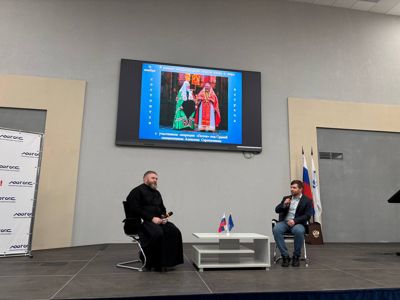 В рамках международной недели науки и мира, посвященной гармоничному сосуществованию знаний и духовности, Технический колледж "Логос" принял в своих стенах особого гостя — участника операции "Поток" под Суджей, священника Алексея Скрипкина.