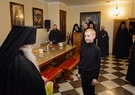 Праздничный день продолжился чином о Панагии. За братской трапезой насельники тепло поздравили с днем тезоименитства отрока Николая, несущего в обители послушание в алтаре.