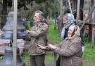 Дети были в полном восторге! Особенно если вспомнить, как мы звонницу освящали! Новую звонницу требуется освятить. Отец Серафим, благочинный нашего округа, назначил день и час: в воскресенье после службы. А июль в этом году, если помните, был очень дождливый. В тот день накрапывал дождь, но отменять ничего не стали: отец Александр, победитель проекта, пригласил своих прихожан на освящение, дети с педагогами тоже готовились к событию, а в монастырской пекарне специально по этому случаю напекли вкуснейшие торты и булочки. И вот, в назначенный час все собрались, духовенство облачилось в свои одежды и тут началось! Дождь полил без преувеличения как из ведра! Бедные священники, видя, что их облачения будут испачканы и местами безнадежно испорчены (напомню, все действие происходило в лесу!) и, понимая, что обратного пути уже нет, с улыбками кропили святой водой и без того мокрую звонницу. Хор пел, с трудом укрываясь от проливного дождя под зонтиками, дети жались к воспитателям.