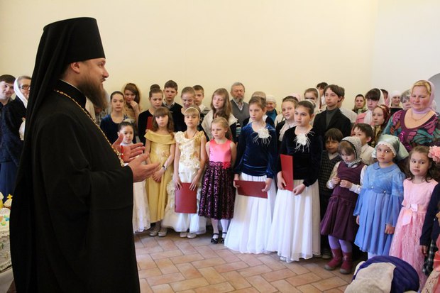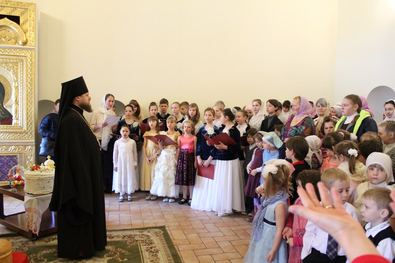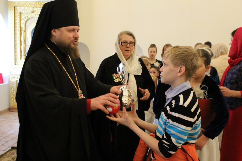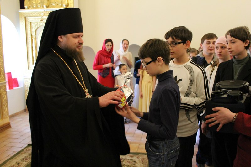 Наместник Свято-Пафнутьева монастыря архимандрит Серафим поздравил воспитанников воскресной школы со Светлым Христовым Воскресением