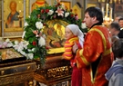 России – санкт-петербургский хор Иоанна Дамаскина из собора Владимирской иконы Божьей Матери. Братия раздает подарки и угощение – всем без исключения дарятся книжки с житием нашей великой святой – Матроны Московской и вкусные ароматные куличи из монастырской пекарни.