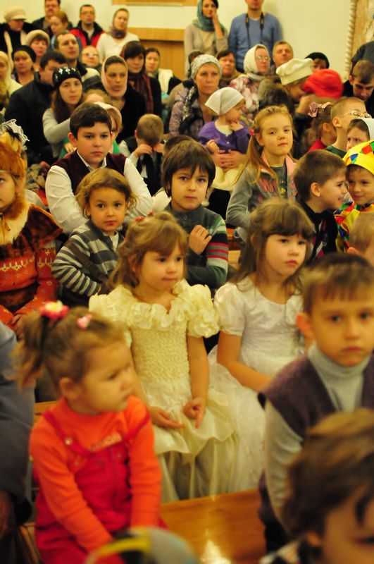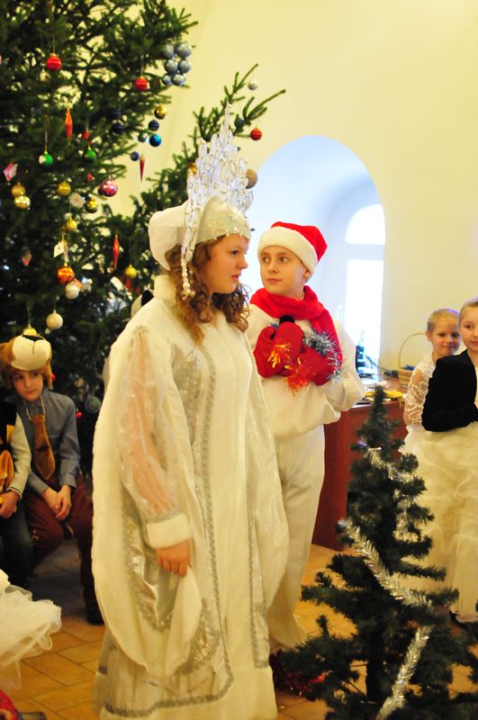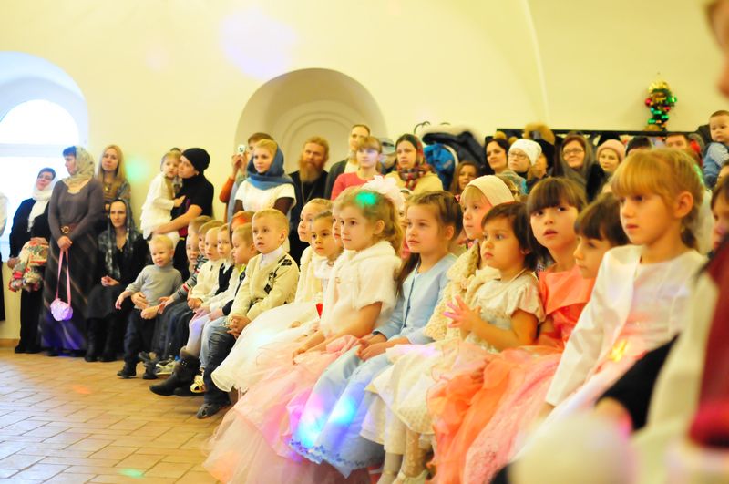 8 января ёлка проводилась для детей 5-10 лет. Воспитанниками Воскресной школы монастыря было показано представление "В сказочном лесу у русской зимы".