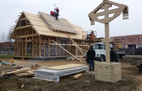 В Балабаново на временном здании для богослужений установлена маковка с крестом