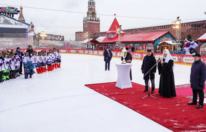 Святейший Патриарх Кирилл принял участие в открытии XIV турнира по русскому хоккею на Красной площади