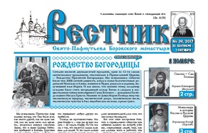 Свежий 36-й номер еженедельника "Вестник" с материалом о монастыре времен прп. Пафнутия