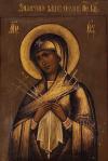 Празднику Сретенья Господня посвящена икона «Умягчение злых сердец», на которой семь стрел пронзают Богородицу. Так, по пророчеству Симеона, изображены страдания Девы Марии. В отличие от иконы «Семистрельная» на этой иконе стрелы расположены не в один ряд.
