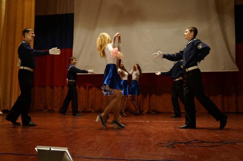 Праздник начался. Его открыла исполнитель собственных песен Ольга Набойченкова. Ее пение не оставило никого равнодушным. Ольгу сменили очаровательные воспитанники Чугусовой Е.А. (учитель музыки Балабановской средней школы №2), учеников сменили солдаты Андрей Ишутин и Александр Чекмарев. Вальс и мазурка в исполнении кадетов и учениц «Державы» (Даюров Д. и Субочева М., Даюров Г. и Богданова А., Зыболов А. и Евсеенко А., Мячин П.и Колыч Е.) вызвали восторг зрительного зала, среди которых были и военнослужащие, их семьи, матери, приехавшие на принятие присяги, маленькие дети.